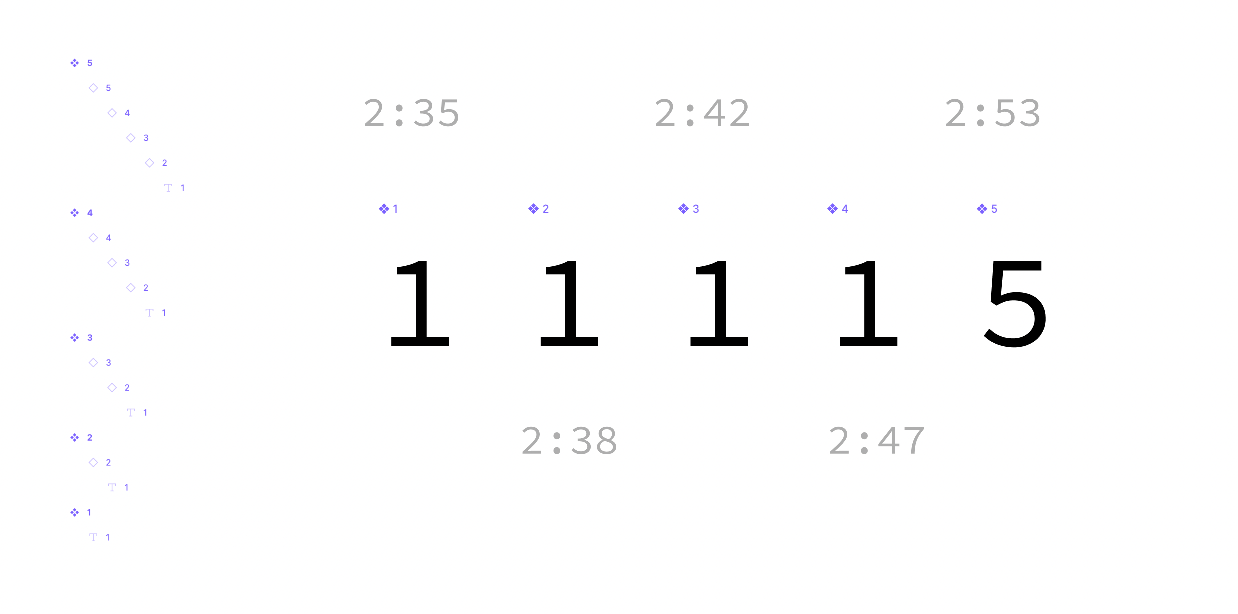 We have component 1 to 5, each instanciating a previous component. (except 1)
